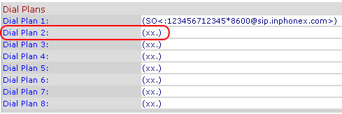 Verifique se o Dial Plan 2 está configurado da seguinte maneira: (xx.)